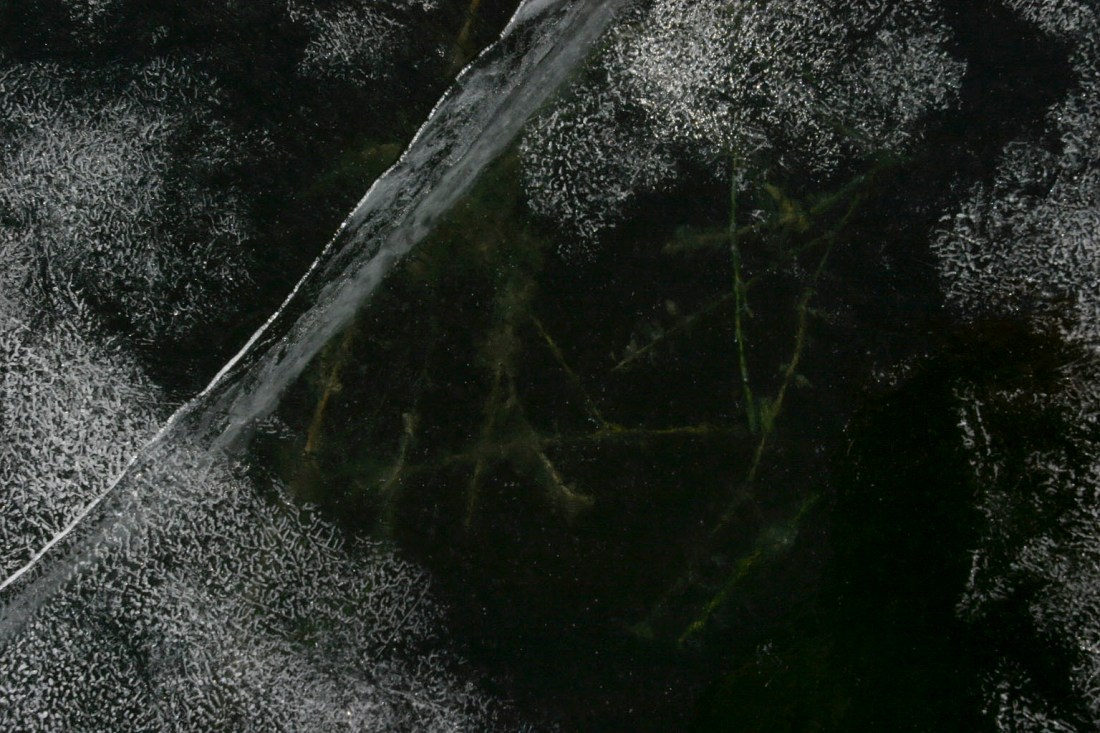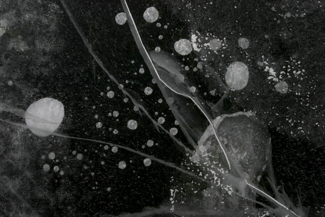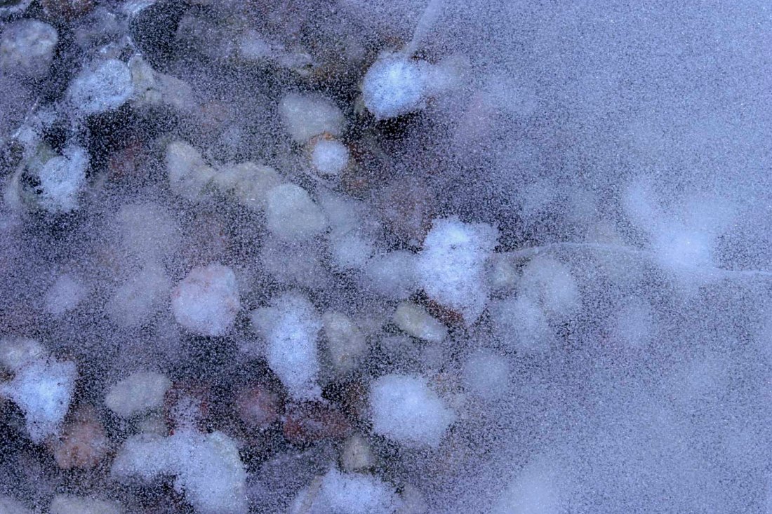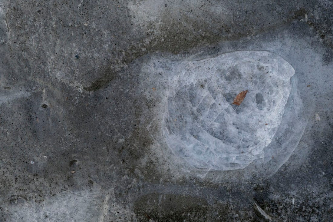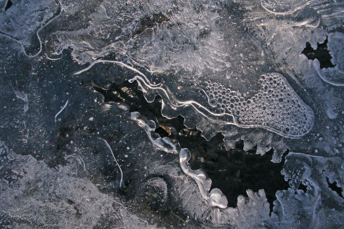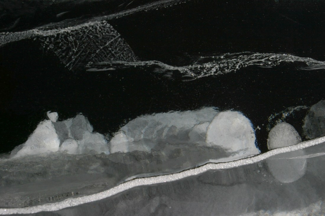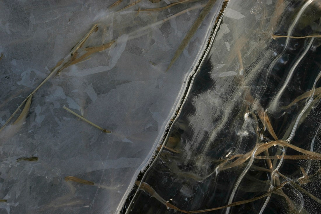 Captivité diaphane et éphémère. Lentement ou subitement, en profondeur ou en surface, les textures fluides se figent.