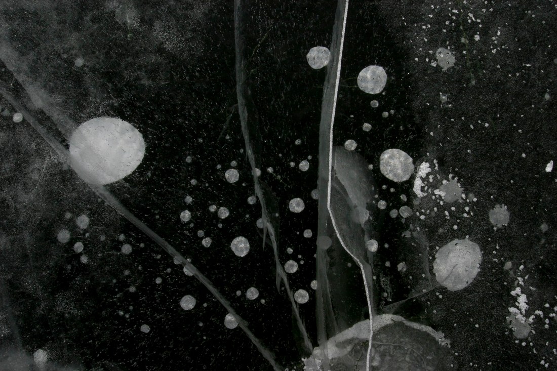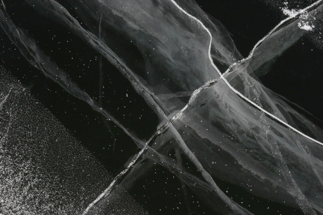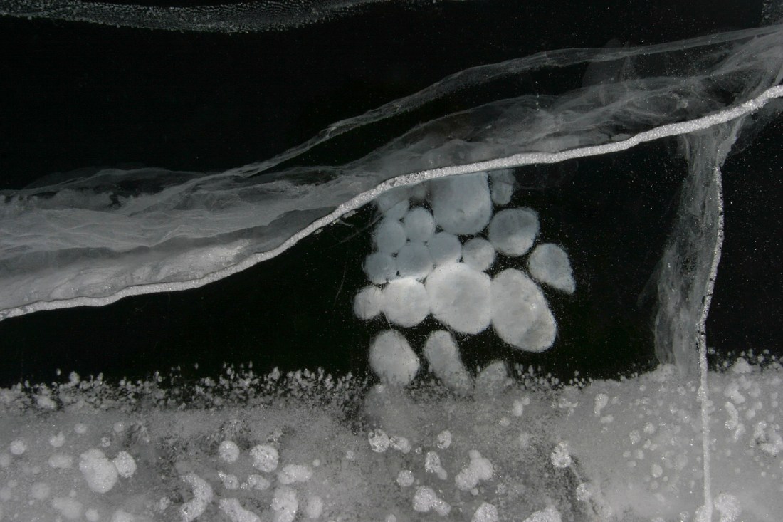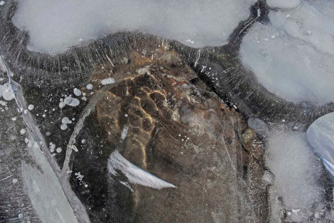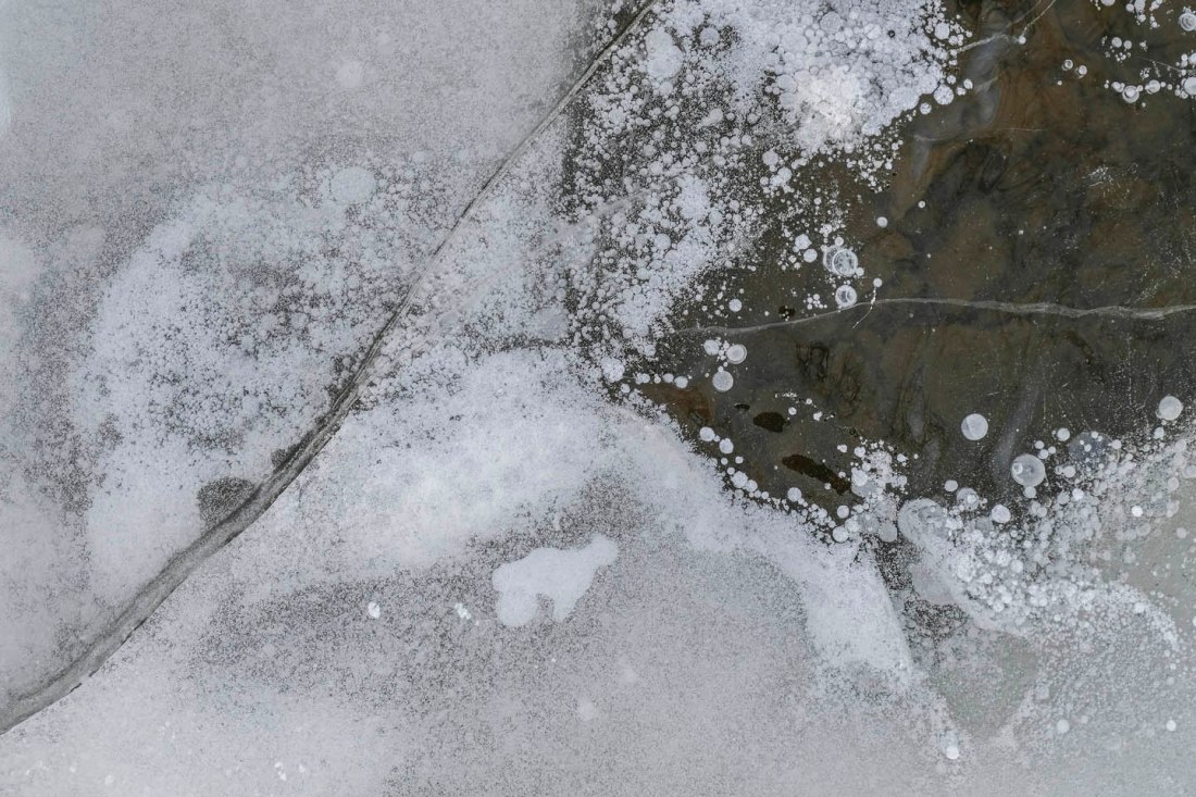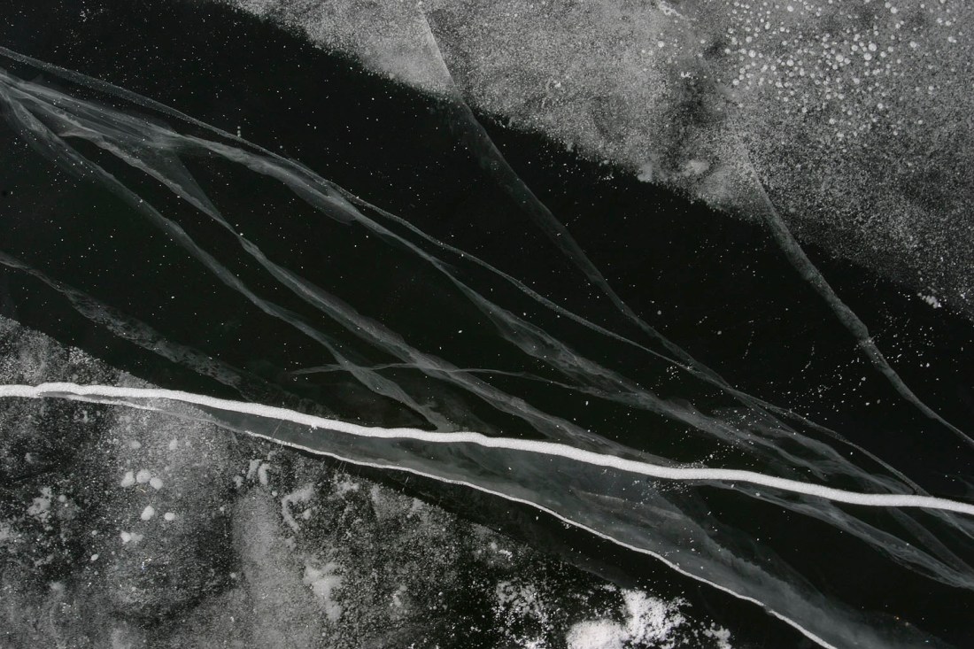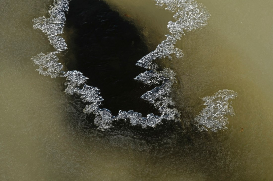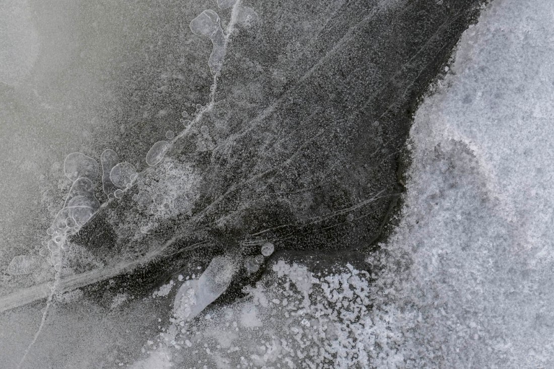 Captivité diaphane et éphémère. Lentement ou subitement, en profondeur ou en surface, les textures fluides se figent.