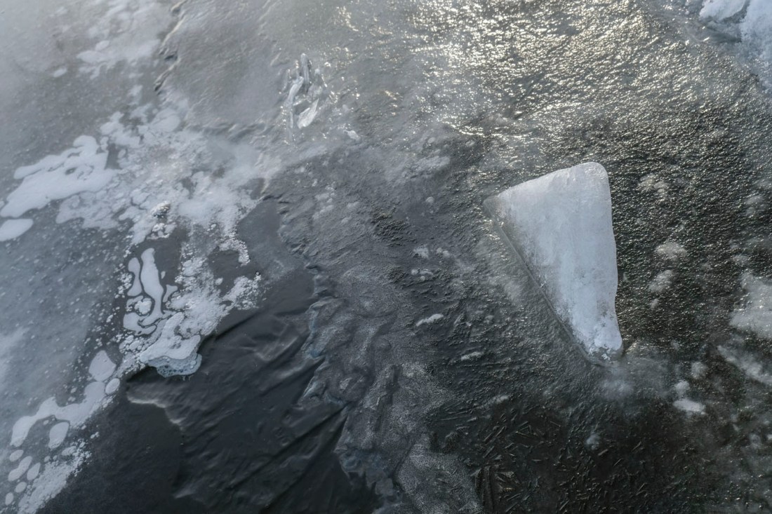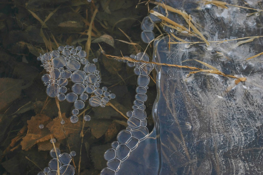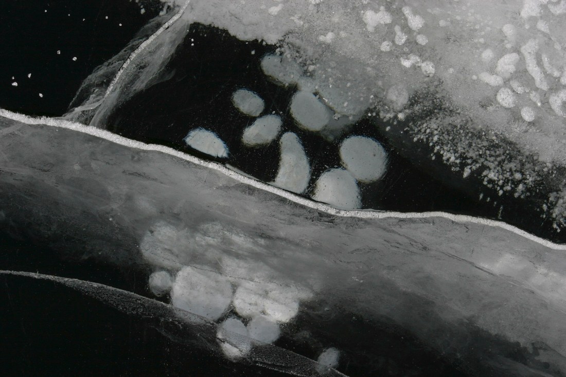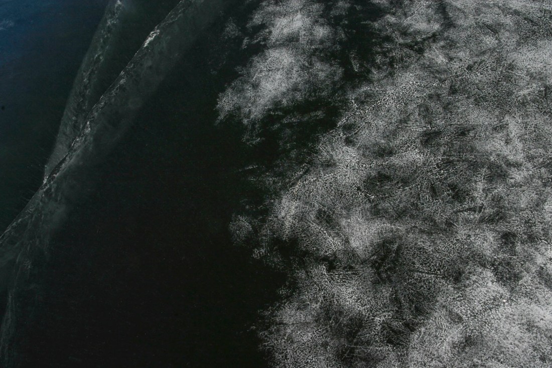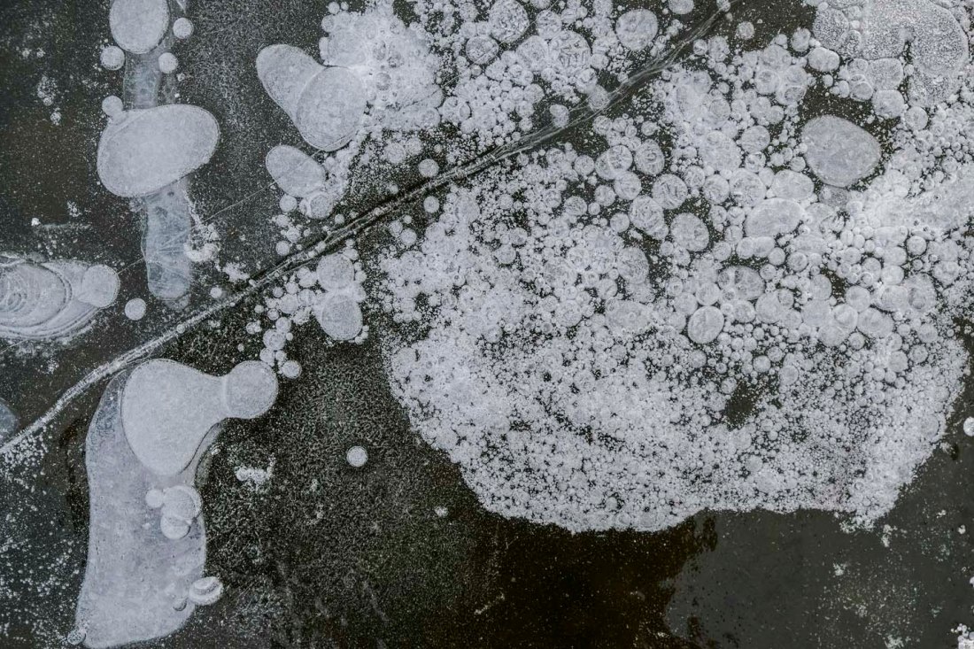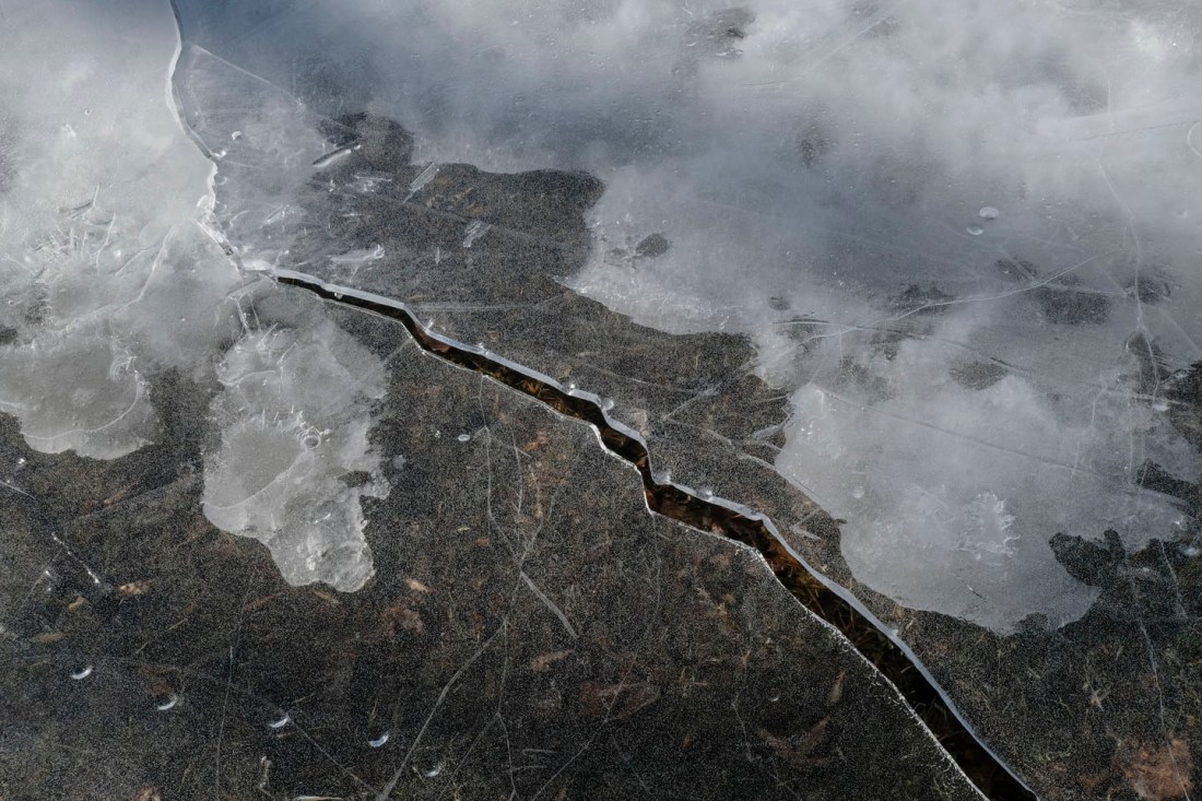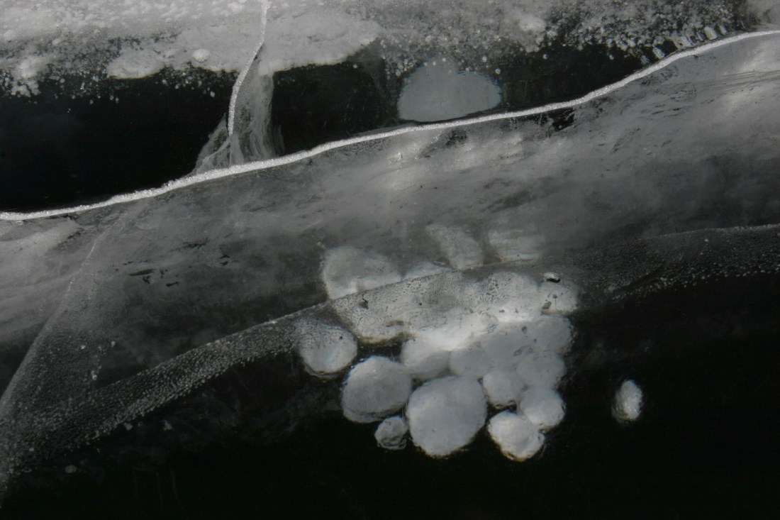 Captivité diaphane et éphémère. Lentement ou subitement, en profondeur ou en surface, les textures fluides se figent.
